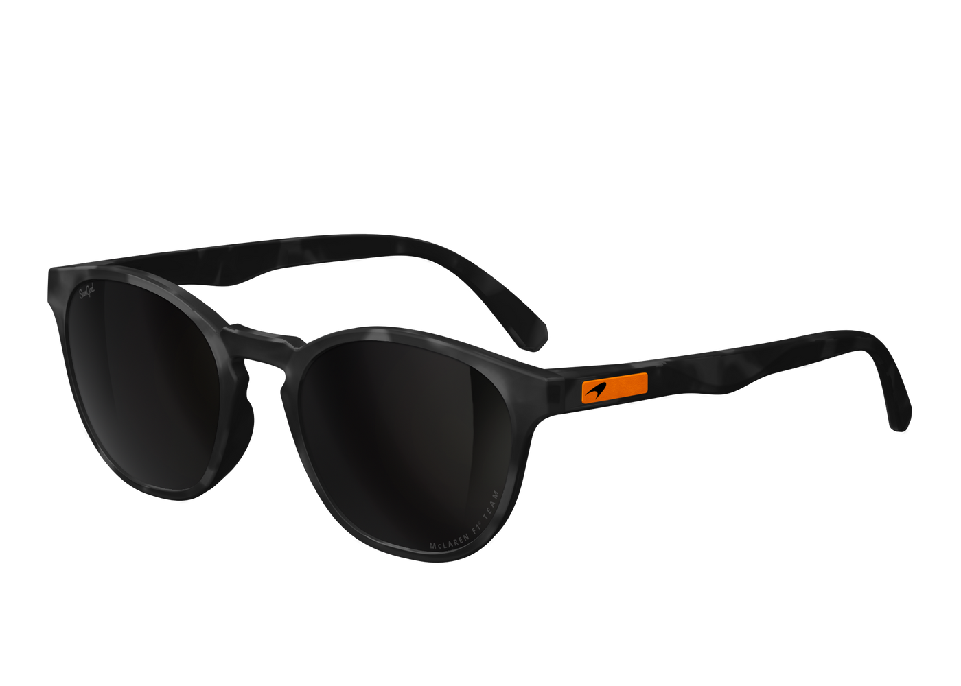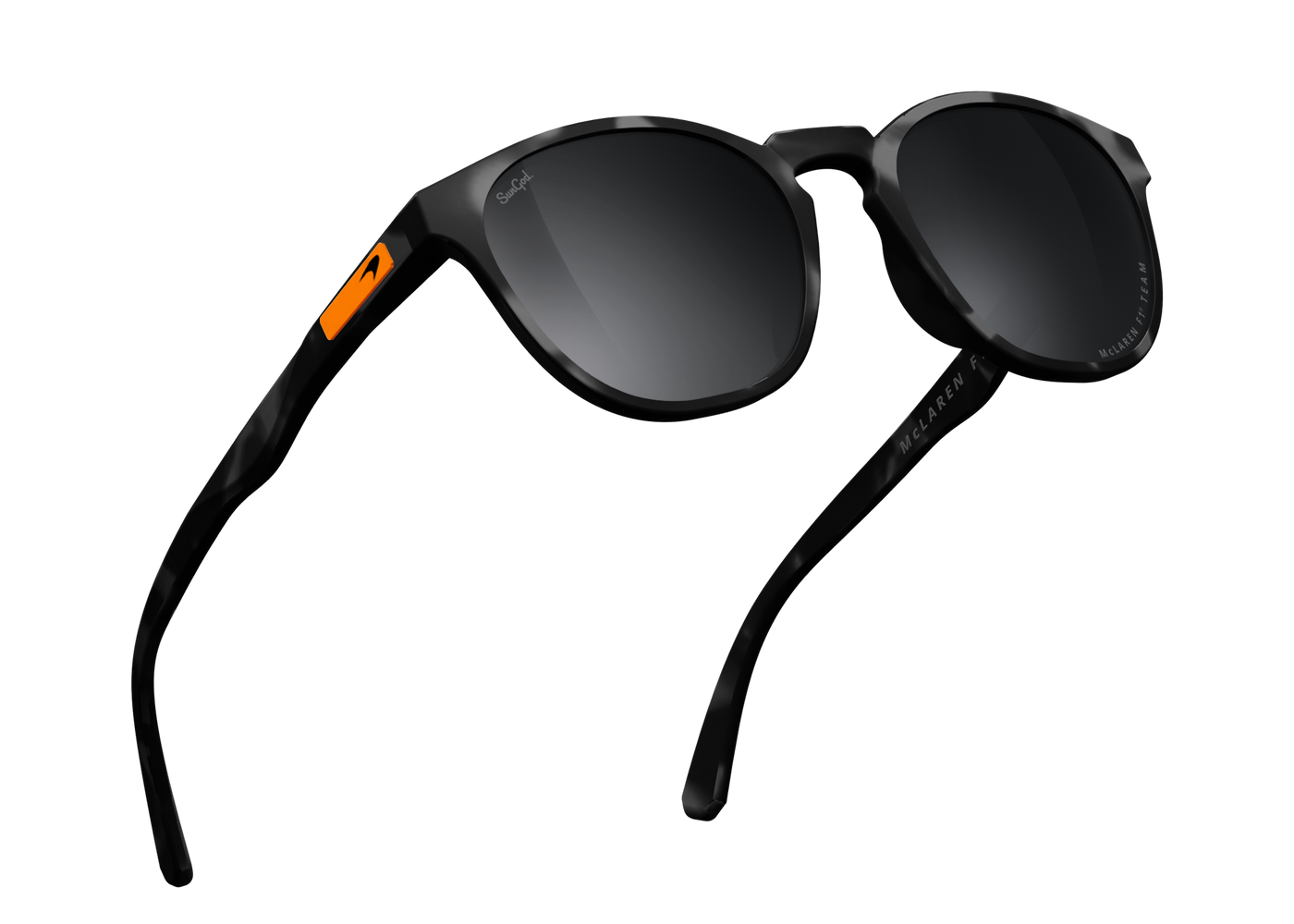 Meet the McLaren Formula 1 Team Tortoise Miras™, featuring SunGod’s industry-leading 8KO® Smoke lenses, coupled with Black Tortoise frames and a McLaren lens engraving. Finished with a Papaya logo plate and the iconic McLaren speedmark.