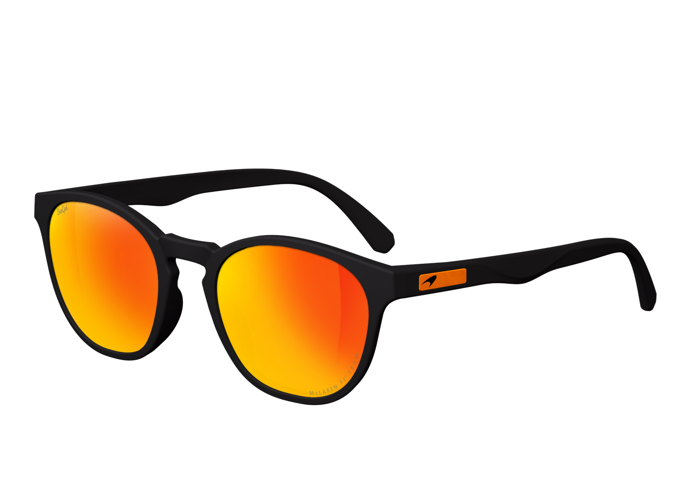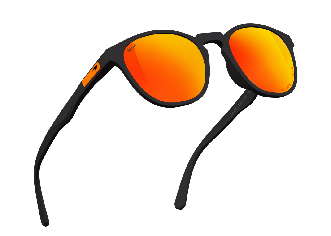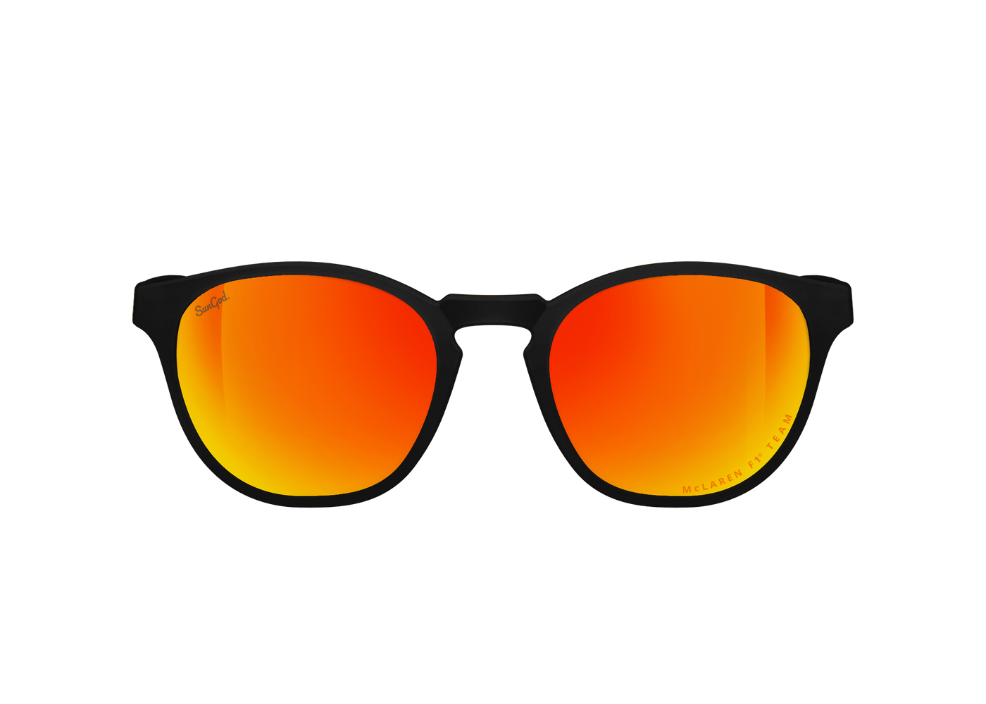 Meet the McLaren Formula 1 Team Miras™, featuring SunGod’s industry-leading 8KO® Fire lenses, coupled with Matte Black frames and a McLaren lens engraving. Finished with a Papaya logo plate and the iconic McLaren speedmark.